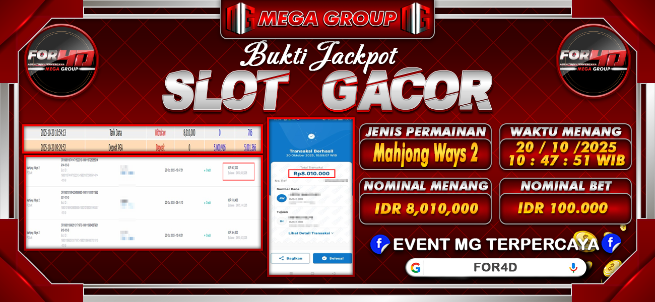 Jackpot For4D, Game Mahjong Ways 2, Rp 8,010,000 LUNAS