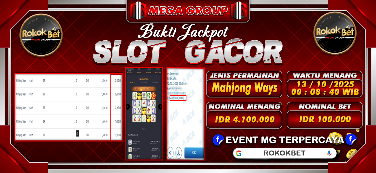 Jackpot Okewla, Game Mahjong Ways, Rp 4,100,000 LUNAS