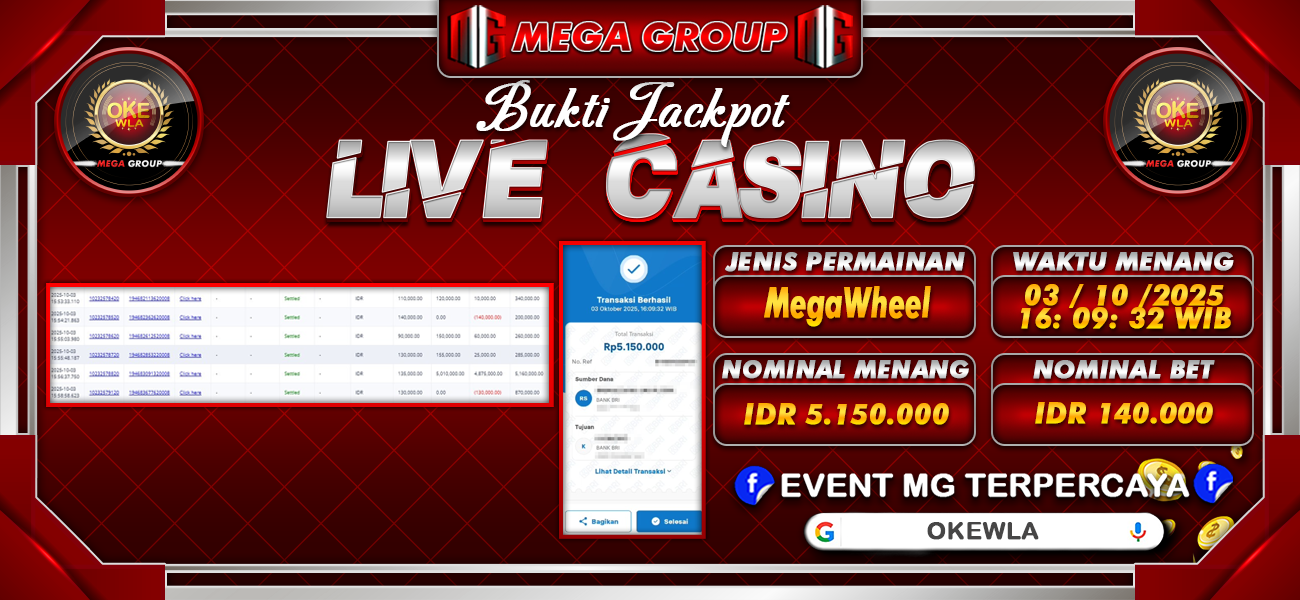 Jackpot Okewla, Game MegaWheel, Rp 5,150,000 LUNAS