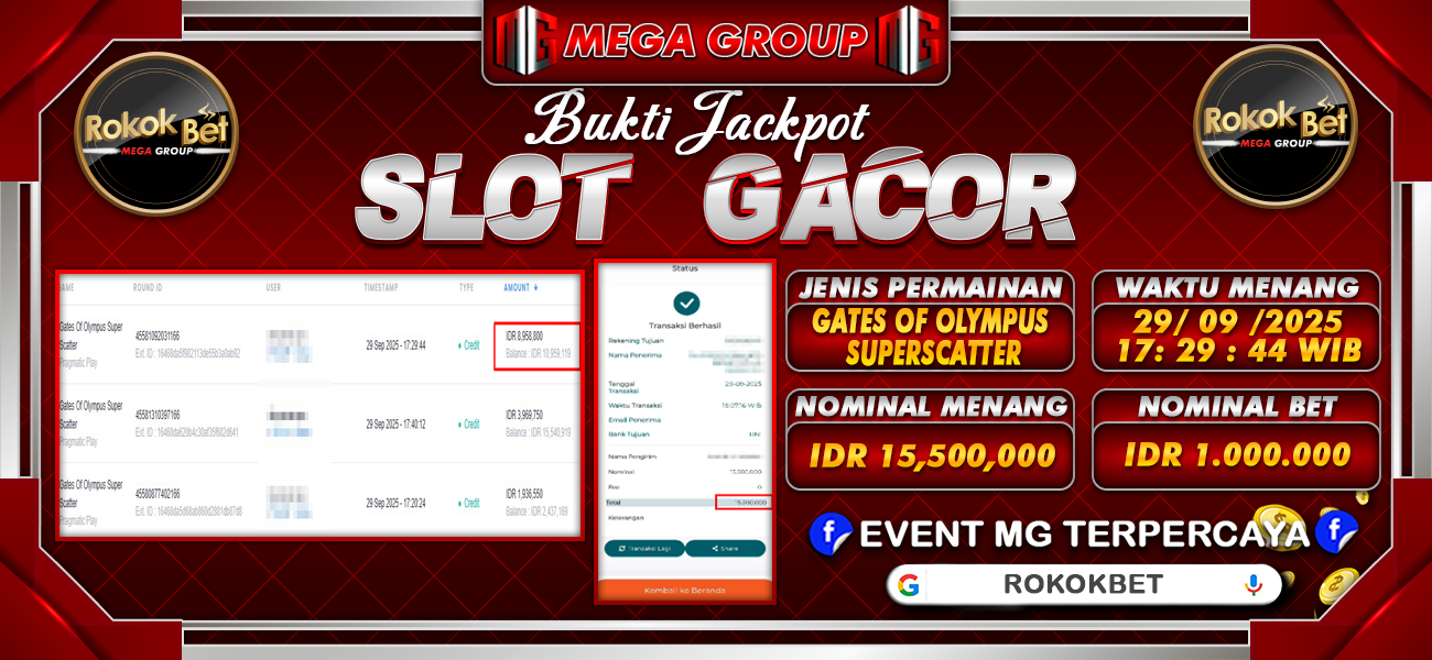 Jackpot Rokokbet, Game Gates Of Olympus Super Scatter Pragmatic Play, Rp 15,500,000 LUNAS