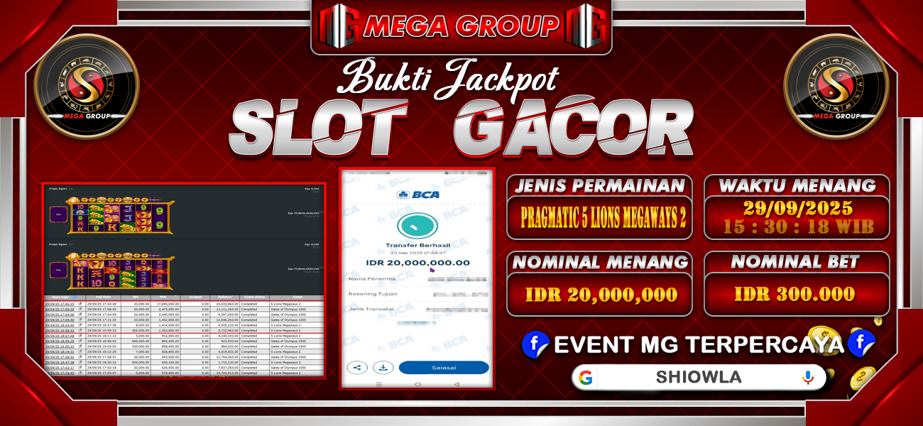 Jackpot Shiowla, Game Menang dari permainan pragmatic 5 Lions Megaways 2, Rp 20,000,000 LUNAS